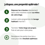 - Les boules de lessive sont conçues pour être réutilisées durant des centaines de lavages (préconisation 12 mois maximum). Remplacez-les lorsque vous constatez une détérioration extérieure.